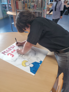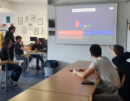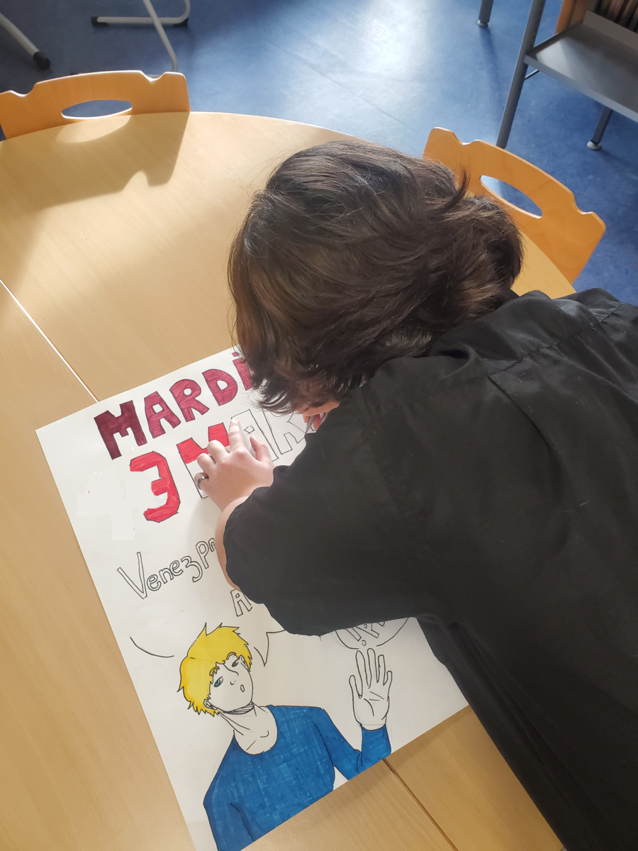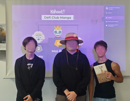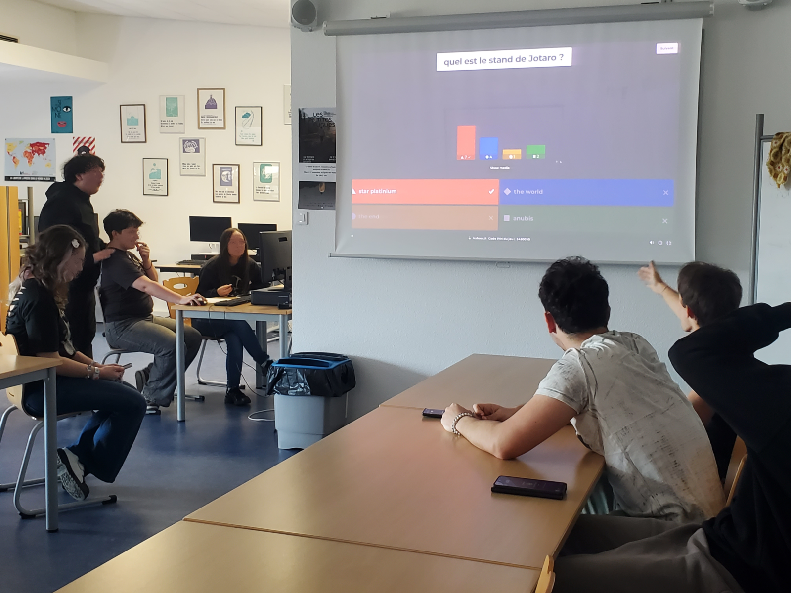 Avant ce temps fort, les élèves du club Manga avaient organisé l’activité avec enthousiasme et énergie : affiche réalisée à la main par le coup de crayon talentueux de Mélina, élaboration des questions sur un large spectre de mangas, communication sur la manifestation, choix des lots et production du Kahoot !
