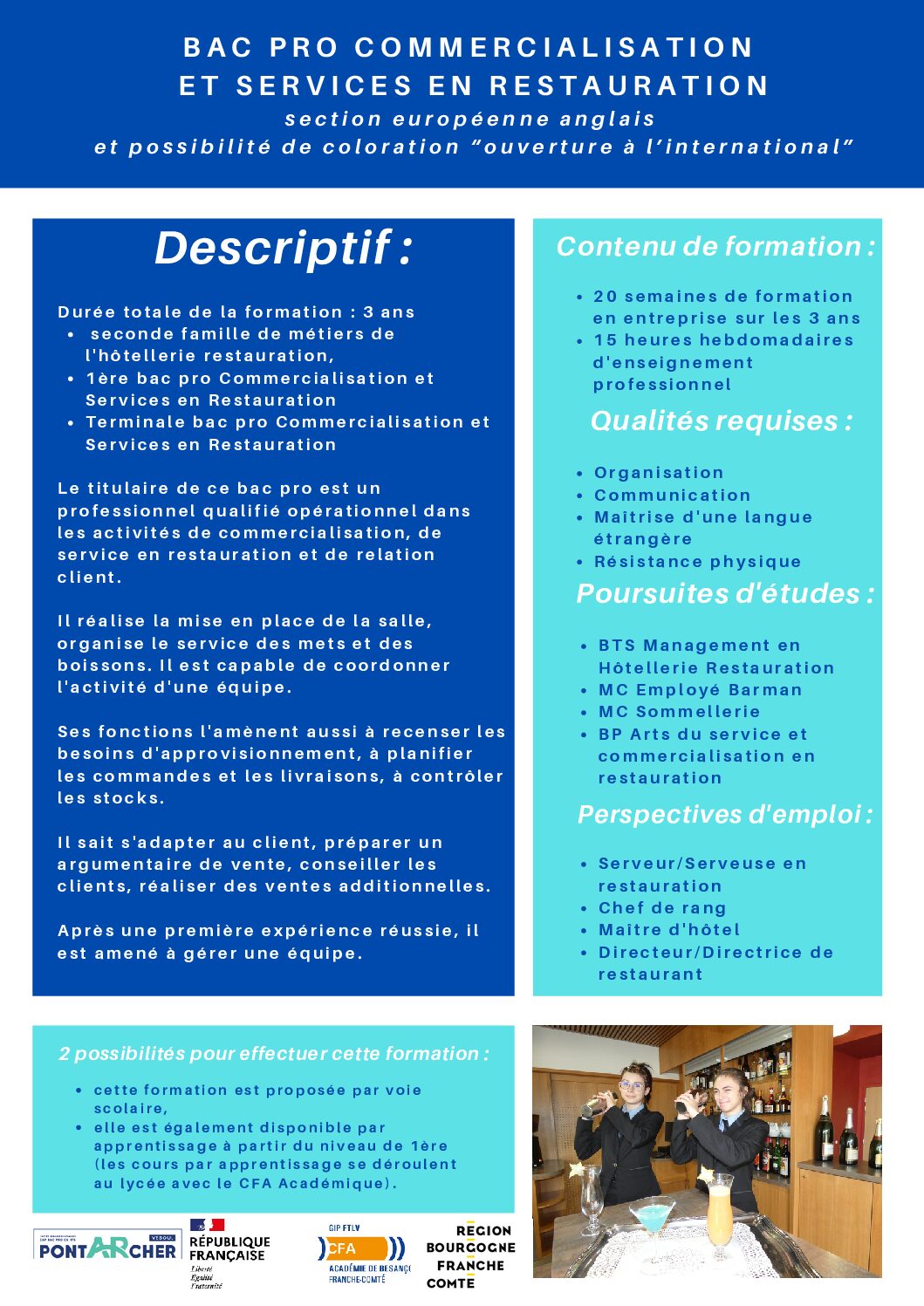 Le Bac Professionnel Commercialisation et Services en Restauration est un diplôme de niveau IV préparé en 3 ans.